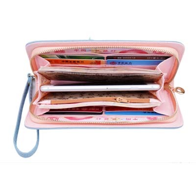 leather lady purse with wristlet hot selling Product Item:WW-0023 Material :Real Leather Colors:Pink ,blue ,black RFID blocking ,card slots,currency ,phone pocket MOQ: 100 pcs/color women wallet , clutch , lady purse , women pouch Inquiry Send Email